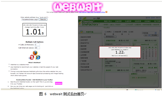 WebWait目前支持FireFox、Opera和IE三种浏览器,你可以设置载入页面的次数和每次的时间间隔,默认5次之后计算出平均值就为结果了。