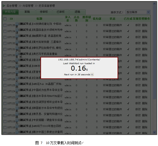 为了不让ASP.NET的特性影响生成速度,先生成某个只有10篇文章的栏目列表,再生成此栏目的列表并计时。
