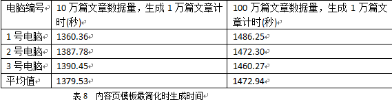 小结:动易SiteFactory2.0的内容页的生成速度可以说用“飞快”来形容,无论是10万数据还是100万数据,无论是简单模板还是复杂模板,内容页的HTML生成速度都达到了每秒可以生成6-10篇。从数据中也可以看出来,同样的模板时,10万数据和100万数据在生成HTML时没有太大的性能差异,但模板的复杂度则直接影响了生成速度,模板越复杂,调用的标签越多,性能衰减得越厉害。