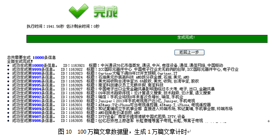 为了不让ASP.NET的特性影响生成速度,先小量生成10篇文章,不计时,然后开始生成1万篇文章并计时。