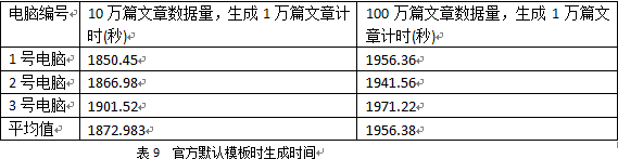 2)使用一个官方默认提供的模板(除了含有文章的标题、作者、更新时间、内容等,还有相关文章、推荐文章、热门文章等标签),生成1万篇文章计时。模板的前台显示效果见下图: