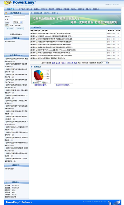 6)为首页制作一个复杂的模板(调用20个栏目的列表,还有其他各种功能),生成首页计时。模板的前台显示效果见下图: