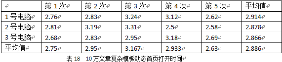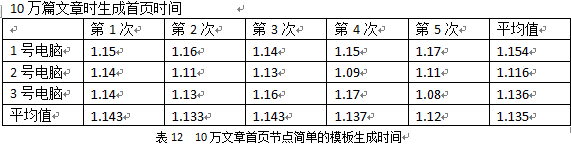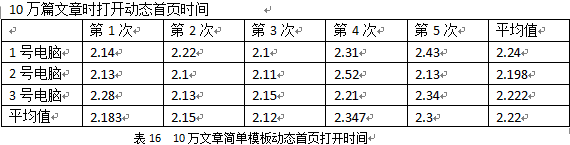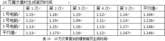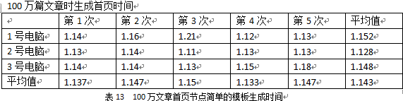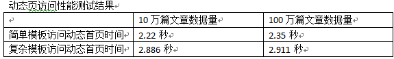 小结:动易SiteFactory2.0的首页的访问速度可以说用“飞快”来形容,无论是10万数据还是100万数据,无论是简单模板还是复杂模板,首页的HTML生成速度都在3秒左右。从数据中也可以看出来,同样的模板时,10万数据和100万数据在生成HTML时没有太大的性能差异,但模板的复杂度则直接影响了生成速度,模板越复杂,调用的标签越多,性能衰减得越厉害。