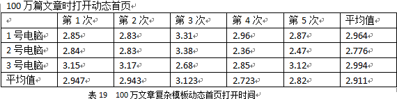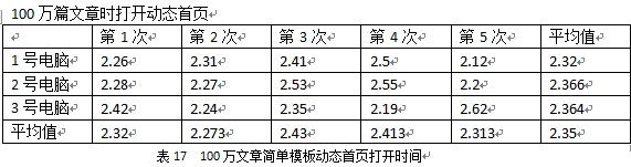 当我们和生成首页的时间进行对比,我们发现一个很特殊的现象:生成首页的时间还小于访问动态首页的时间。这是为什么呢?这是因为本次测试的统计时间是以页面打开时间为准,这里面包含了三个时间:服务器端的程序执行时间+IE下载页面时间+IE解析页面时间。生成首页HTML时,显示的信息很少,所以后两者几乎不用时间;访问动态首页时,因为首页的信息量大,还有大量图片等,所以后两者的时间相对较长。