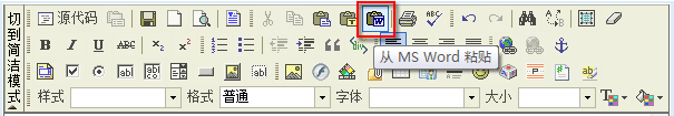 一、首先登录后台,来到文章添加界面,在文章内容编辑器中切换成高级模式,点击“从 MS Word 粘贴”功能按钮。