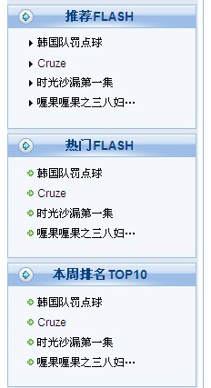 此外,模板中还内置了推荐Flash、热门Flash、本周排名top10等等标签。