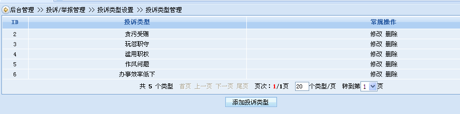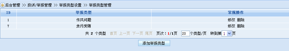投诉/举报系统可以自定义举报\投诉的类别,如贪污受贿、玩忽职守、滥用职权、民生问题、环境问题等举报/投诉类别。