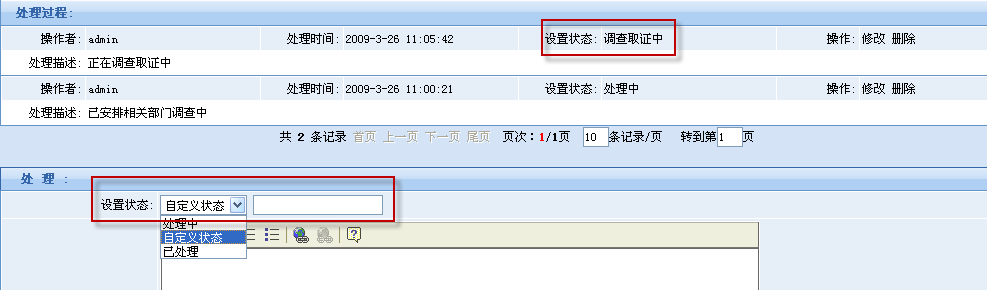 举报\投诉处理过程中的各种状态可以自定义。如根据政府部门具体情况设置“已提交相关部门处理”、“调查取证中”等等。
