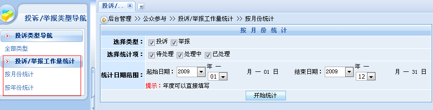 投诉/举报工作量统计