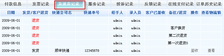 而在退货或换货后,顾客也可以在前台会员中心查看到自己的所有发退货记录,一目了然,非常清楚: