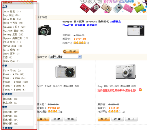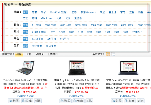什么是商品筛选?也许有的用户对这个词会有点陌生。这个词,解释起来可能有点费劲,不过没关系,大家只要仔细看下以下两幅图估计就会恍然大悟了:噢,原来就是这个功能啊!