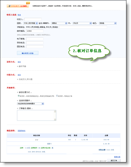 同时,在填写核对订单页面还运用了Ajax技术,可以在页面无刷新的情况下对订单的收货人信息、送货方式、付款方式、其他要求、商品清单等多个部分进行分别修改,更好地提示了用户体验。