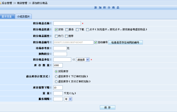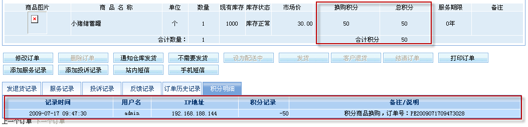 在BizIdea3.0中,商家可以在网站后台事先添加好相应的积分商品,以供前台会员进行兑换。而前台会员在自己的积分达到商家设定的数值后便可以直接选定需要兑换的商品,然后提交兑换订单,商家在后台处理完订单后便直接将兑换商品邮寄给会员,同时会员帐户中减去相应积分。而且,为了便于对积分商品和积分兑换订单的良好管理,BizIdea后台将对积分商品和订单和普通商品及订单进行分开独立管理,亦即后台商品将分为普通商品和积分商品两类、订单也分为普通订单和积分商品订单两类进行管理。