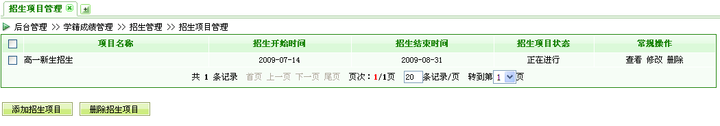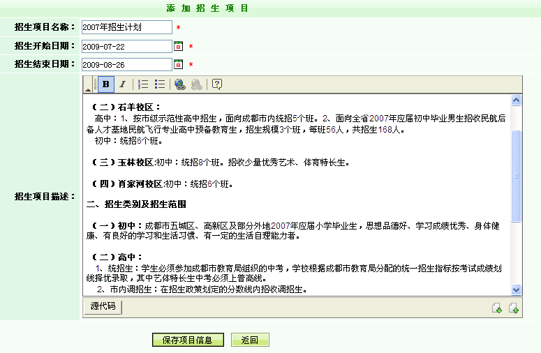 学校管理员可以在后台方便添加学校的各项招生信息: