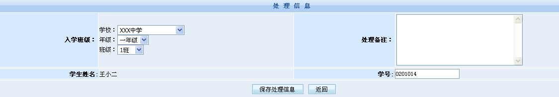 学校工作人员在后台可以对学生的报名进行审核处理,符合学校录取条件的即可直接将学生分配至相应的年级和班级,同时系统为该学生自动生成唯一学号。