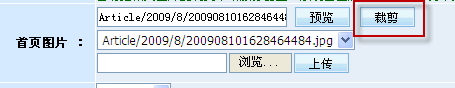 在后台文章添加页面,我们可以看到首页图片上传地址栏后多了一个“裁剪”的按钮,没错,当我们将图片上传后就可以进行在线裁剪了。点击“裁剪”按钮,系统将以Ajax无刷新方式打开图片裁剪操作窗口: