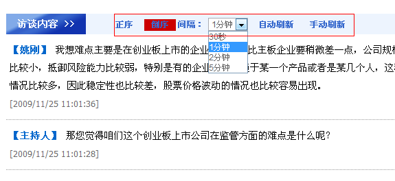 访谈内容可以根据网友的习惯对显示顺序、刷新时间等进行设置,充分适应每个人参与访谈时的操作习惯。