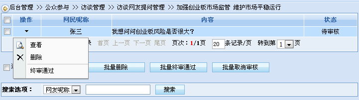 同时,访谈主持人、书记员或访谈工作人员可以对网友的提问进行修改、删除等多种管理。