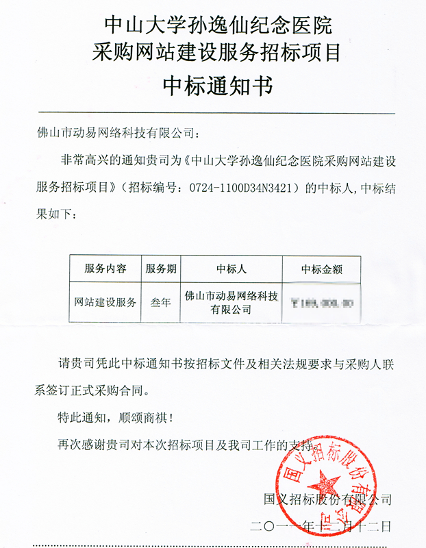 动易中标中山大学孙逸仙纪念医院网站建设服务项目