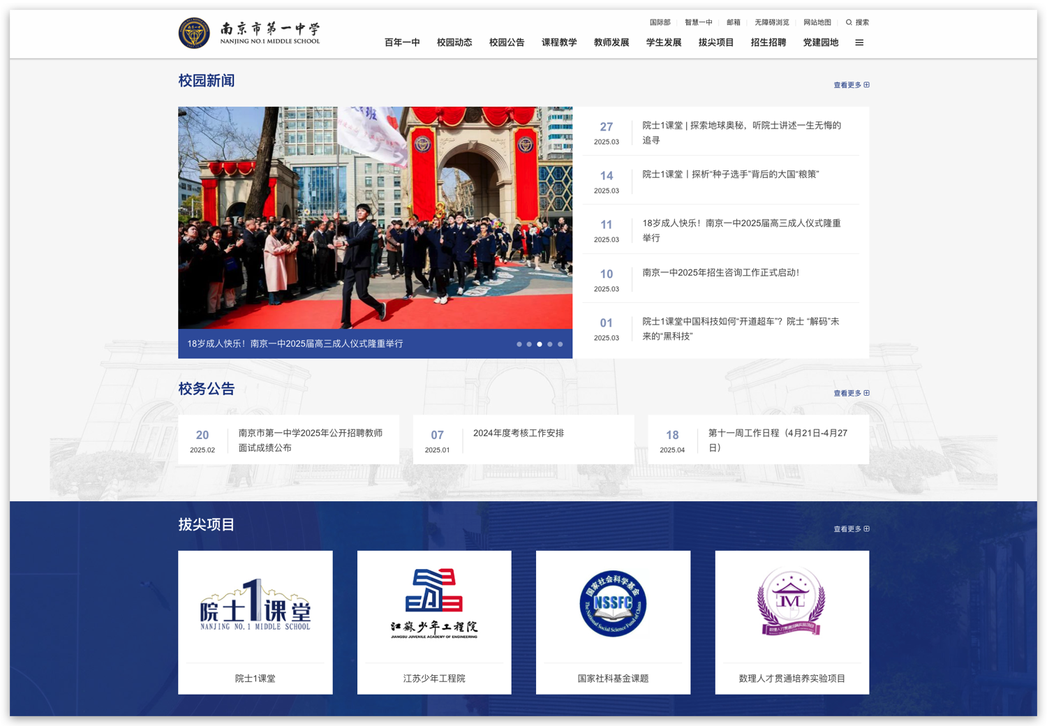 【动易中学网站改版案例】百年名校 南京市第一中学网站改版上线